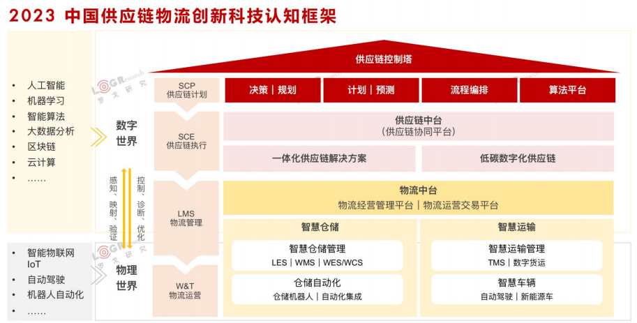 在过往行业追踪与沉淀的基础上,《2023中国供应链物流创新科技报告》,罗戈网提出了新的认知框架——在数字世界,以端到端供应链数据驱动的智慧计划(SCP)、执行(SCE)、物流管理(LMS),指导物理世界的运营、诊断与持续优化,并支撑企业一体化供应链管控视图(供应链控制塔)。报告是近几年对整个物流科技罕见的全面性、综合性、整体性研究成果,包含了供应链物流技术趋势与创新图谱、供应链数智化、科技供应链解决⽅案、物流数智化、趋势总结等内容。